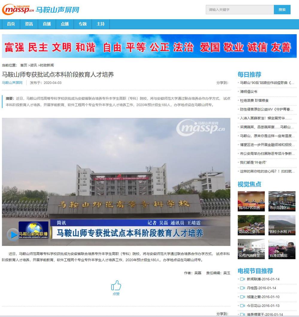 【马鞍山新闻联播】马鞍山师专获批试点本科阶段教育人才培养