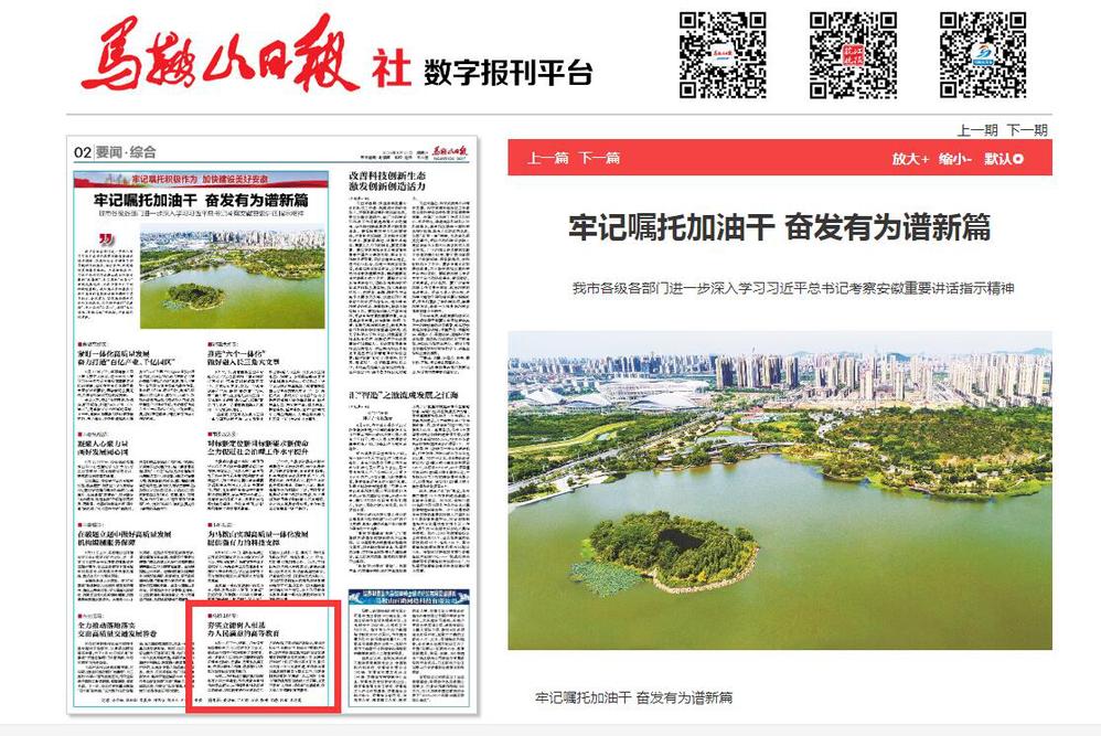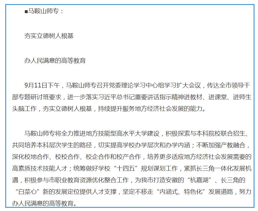 【马鞍山日报】马鞍山师专:夯实立德树人根基 办人民满意的高等教育