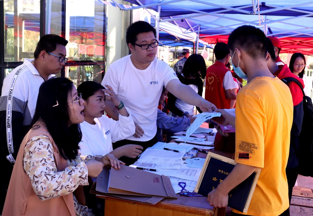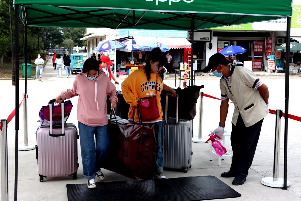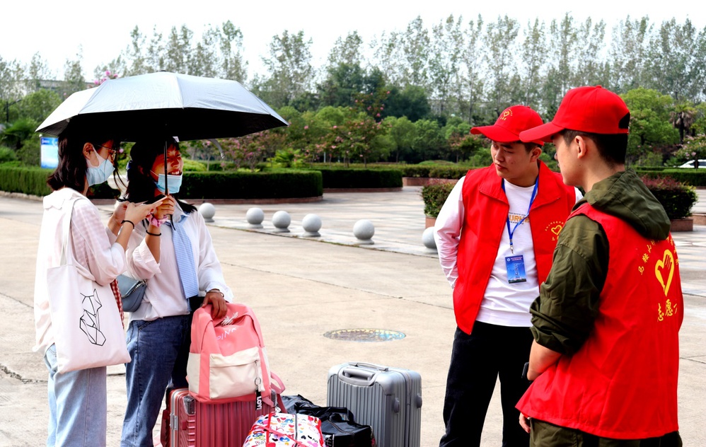 报到当日,学校一号门设置专门通道,学生们佩戴口罩、间隔排队、有序办理入学手续。工作人员认真做好身份信息核查、健康码核验、行李消杀、体温测量等工作,热心引导每一个学生完成规定流程,带领学生顺利进入校园,使整个报到现场平稳有序。由于疫情防控,家长和随行亲人不能进入校园,新生虽然只能自己带着行李进校,但志愿者们和行李车已在一旁等候多时,点对点帮助新生搬运行李,陪同走完入校流程。