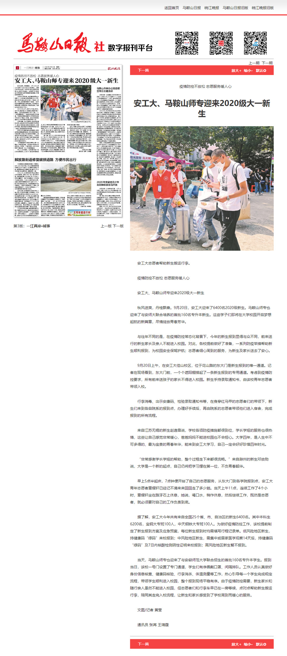 【马鞍山日报社】安工大、马鞍山师专迎来2020级大一新生
