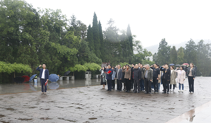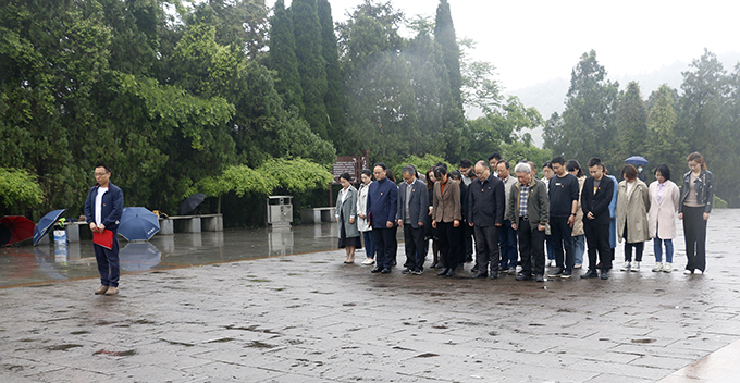 4月22日上午,天空下着绵绵细雨,陵园正中央,矗立着革命烈士纪念碑,碑身正面镌刻着“革命烈士永垂不朽”八个大字。来到濮塘革命烈士陵园,大家拾级而上,步行至革命烈士纪念碑正前,学校党政领导干部和党务工作负责人佩戴党员徽章,神情肃穆。校党委副书记、校长刘淑凤和校党委委员、工会主席吴志华怀着崇敬的心情为革命烈士敬献花圈,并向革命烈士鞠躬,寄托对先贤的哀思。默哀仪式结束后,由校党委委员、纪委书记夏慧新带领党员重温入党誓词。面向鲜红的党旗,大家举起右手,向着党旗庄严宣誓:“我志愿加入中国共产党,拥护党的纲领,遵守党的章程……”铿锵有力的入党誓词,把大家带回到入党的神圣时刻,勉励大家不忘初心、牢记使命。随后,现场全体人员依次缓步绕行,瞻仰革命烈士纪念碑。校党委委员、副校长、宣传部部长李秀华主持活动。