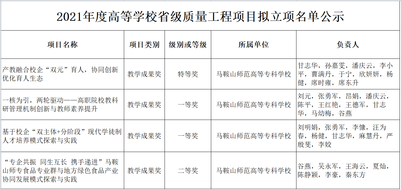 日前,安徽省教育厅公布了2021年度高等学校省级质量工程项目立项名单,bat365中文官方网站共获批12个大类40个项目。其中教学成果奖类取得新突破,获批省级教学成果奖4项,其中特等奖1项,一等奖2项,二等奖1项。(文/昂娟 编辑/王鑫 黄凌骜 审核/刘元)