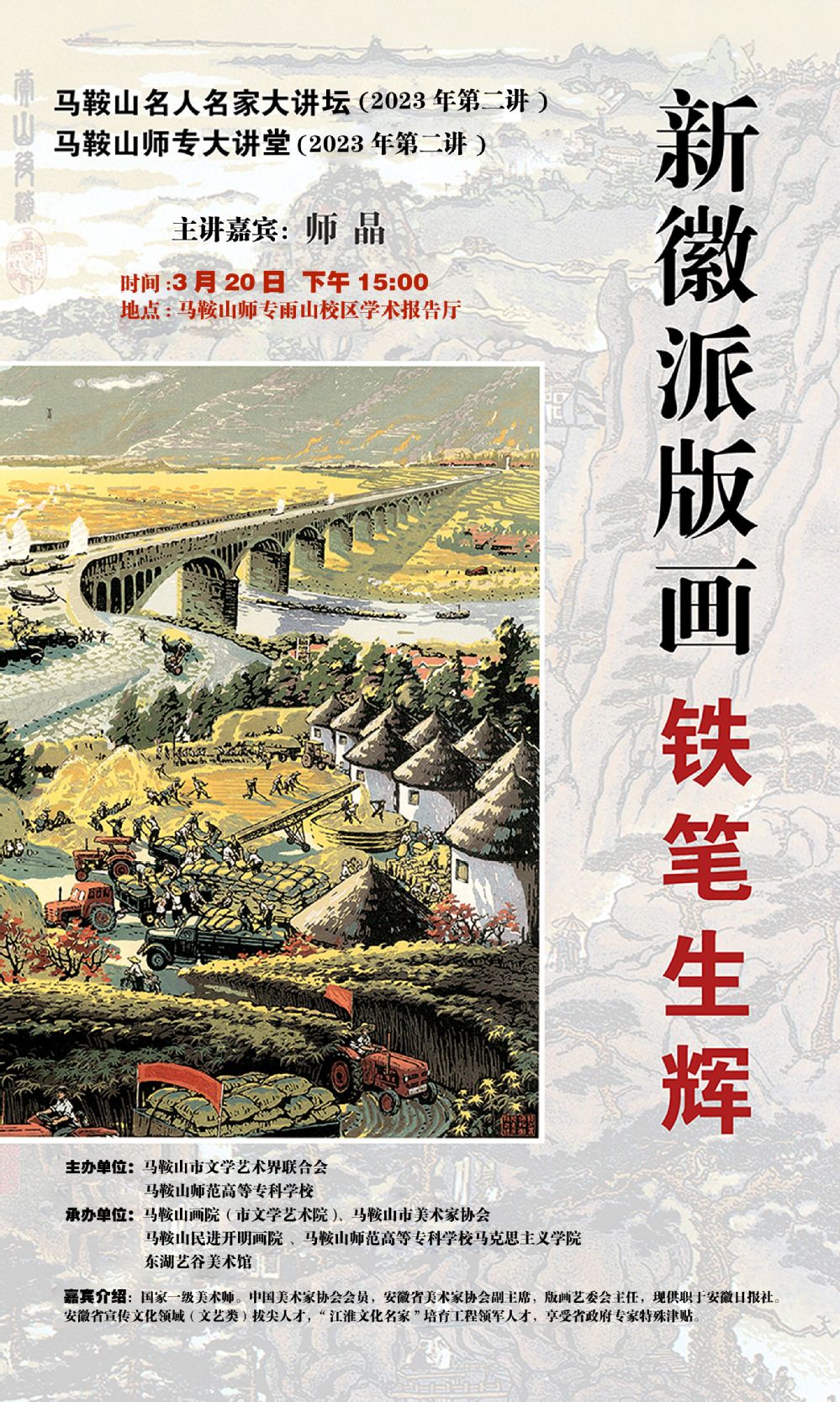 【师专大讲堂系列讲座海报】(2023年第二讲):新徽派版画铁笔生辉
