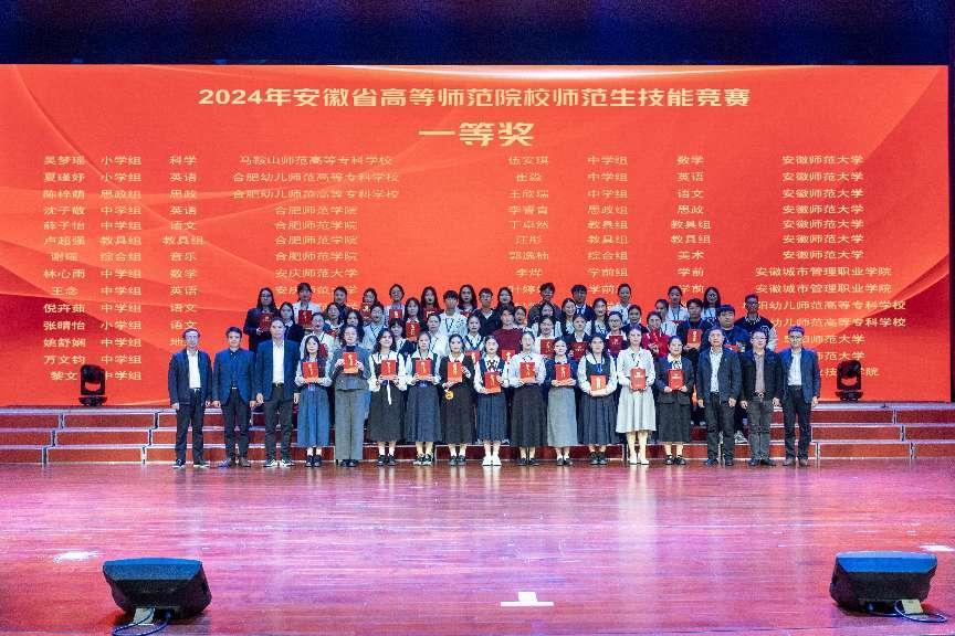近日,由安徽省教育厅主办,安徽省高等院校教师教育合作委员会协办的2024年安徽省高等学校师范生教学技能竞赛暨第六届长三角师范生教学基本功大赛选拔赛在淮南师范学院举行,bat365中文官方网站教师教育学院2020级五年制小学教育专业3班吴梦瑶同学获小学科学组一等奖,2022级小学数学教育班李雯雯同学获小学数学组二等奖,2020级五年制小学教育3班方舟同学获综合心理组三等奖,其中吴梦瑶同学以小学科学组第一名的成绩被推荐参加由安徽师范大学承办的第六届长三角师范生教学基本功大赛。