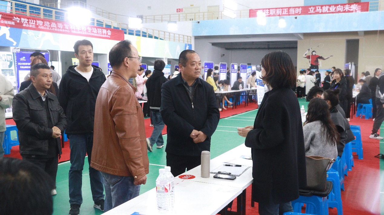 为拓宽毕业生就业渠道,搭建用人单位与毕业生双向选择平台,促进学校毕业生高质量充分就业,11月20日下午,bat365中文官方网站开展2024年秋季马鞍山市“才聚诗城高校行”专场校园招聘会,校党委副书记、副校长杜维斌到招聘会现场检查指导。