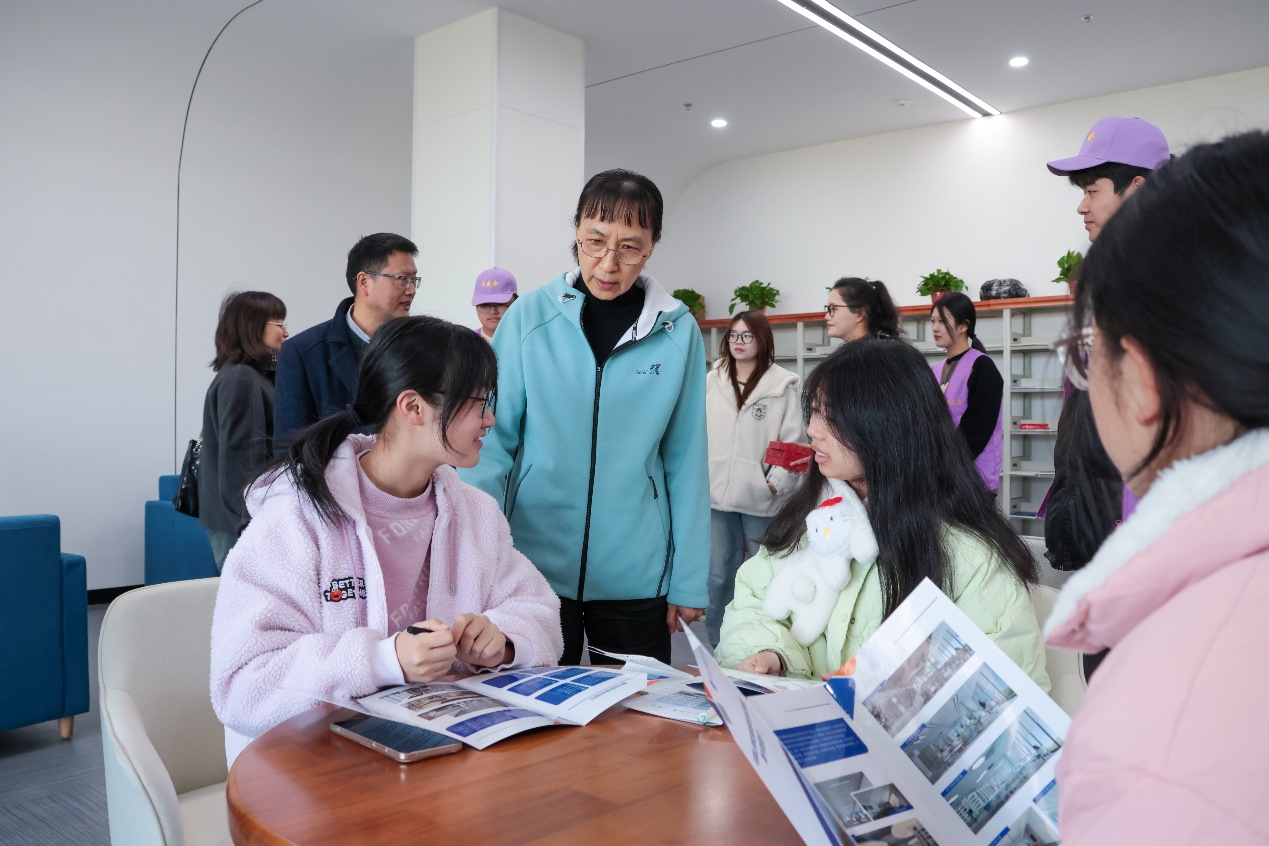 在走访中,刘淑凤一行重点考察了图书馆的书库、自习室以及综合办公区等地方,亲切询问了在场学生的阅读喜好和对图书馆的建议,关心图书馆的开放时间是否符合学生需求,并就如何优化图书馆服务与学生们进行了交流。刘淑凤向相关工作人员详细了解了图书馆基础设施的改造和图书资源建设情况,并就下一步修理维护图书工作提出具体要求。