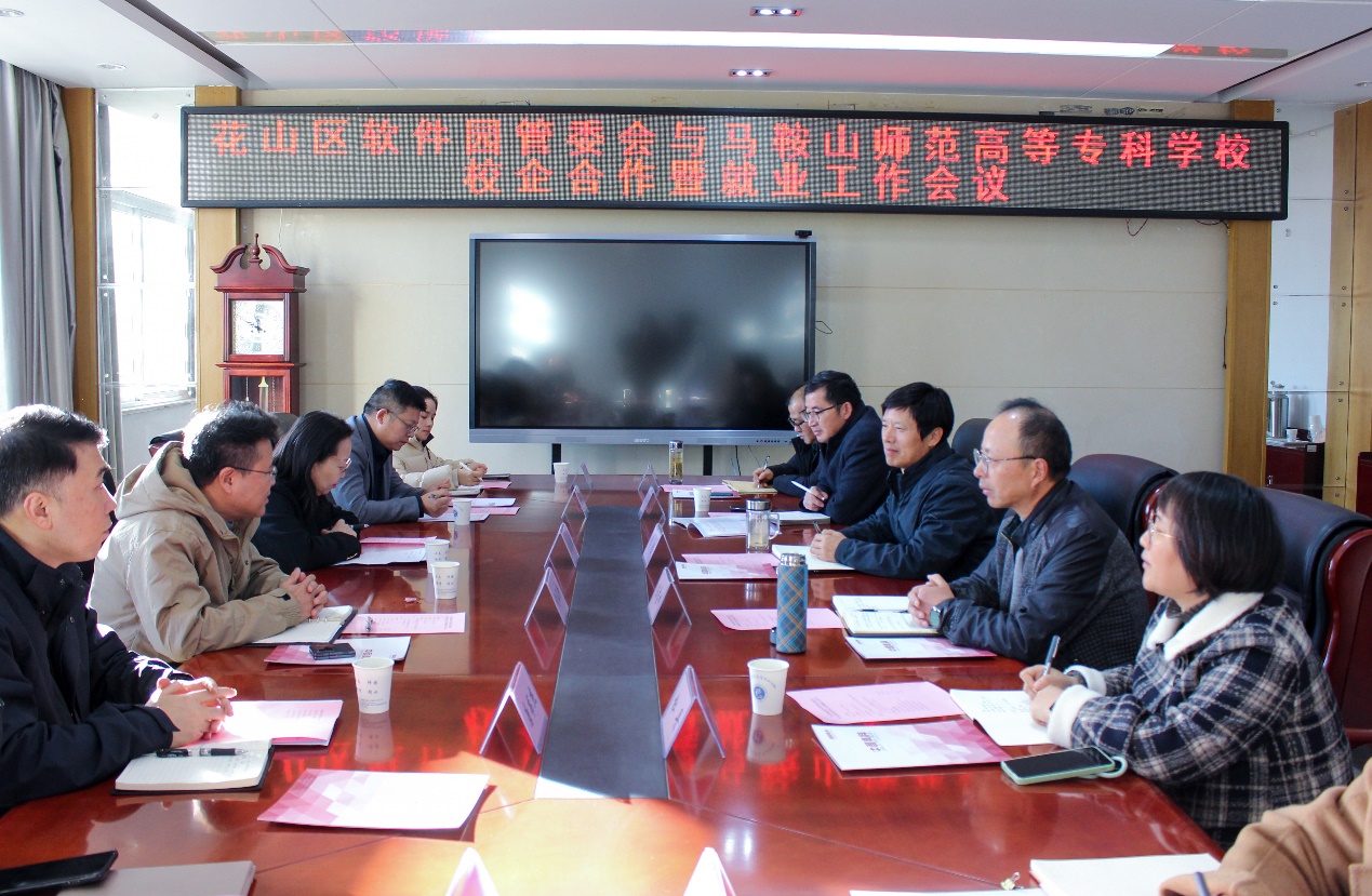 11月28日下午,花山区委常委谢亚新一行人来访bat365中文官方网站,党委委员、副校长李胜接待谢亚新一行,召开学校与花山区软件园管委会校企合作和就业工作洽谈会。