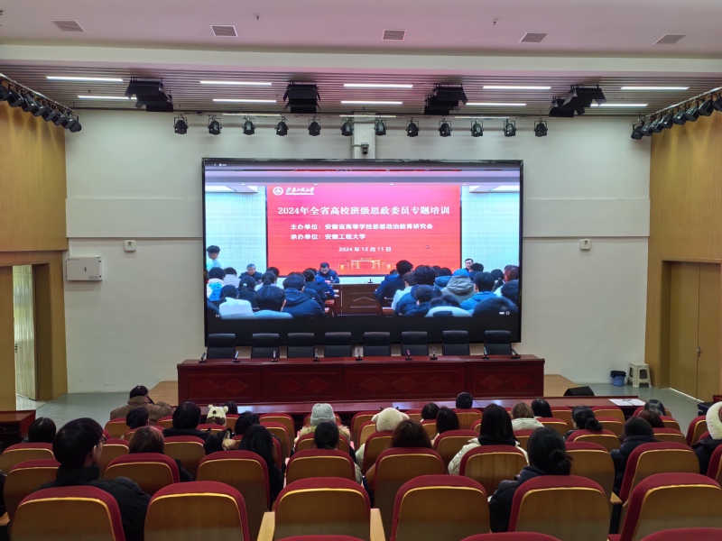 12月11日下午,安徽省高等学校思想政治教育研究会开展2024年全省高校班级思政委员专题培训会,培训由安徽工程大学承办,分为“线下+线上” 培训和实地考察两个环节。bat365中文官方网站雨山校区和滨江校区分别组织各学院团总支书记和班级思政委员集中观看线上培训(第一阶段)直播。