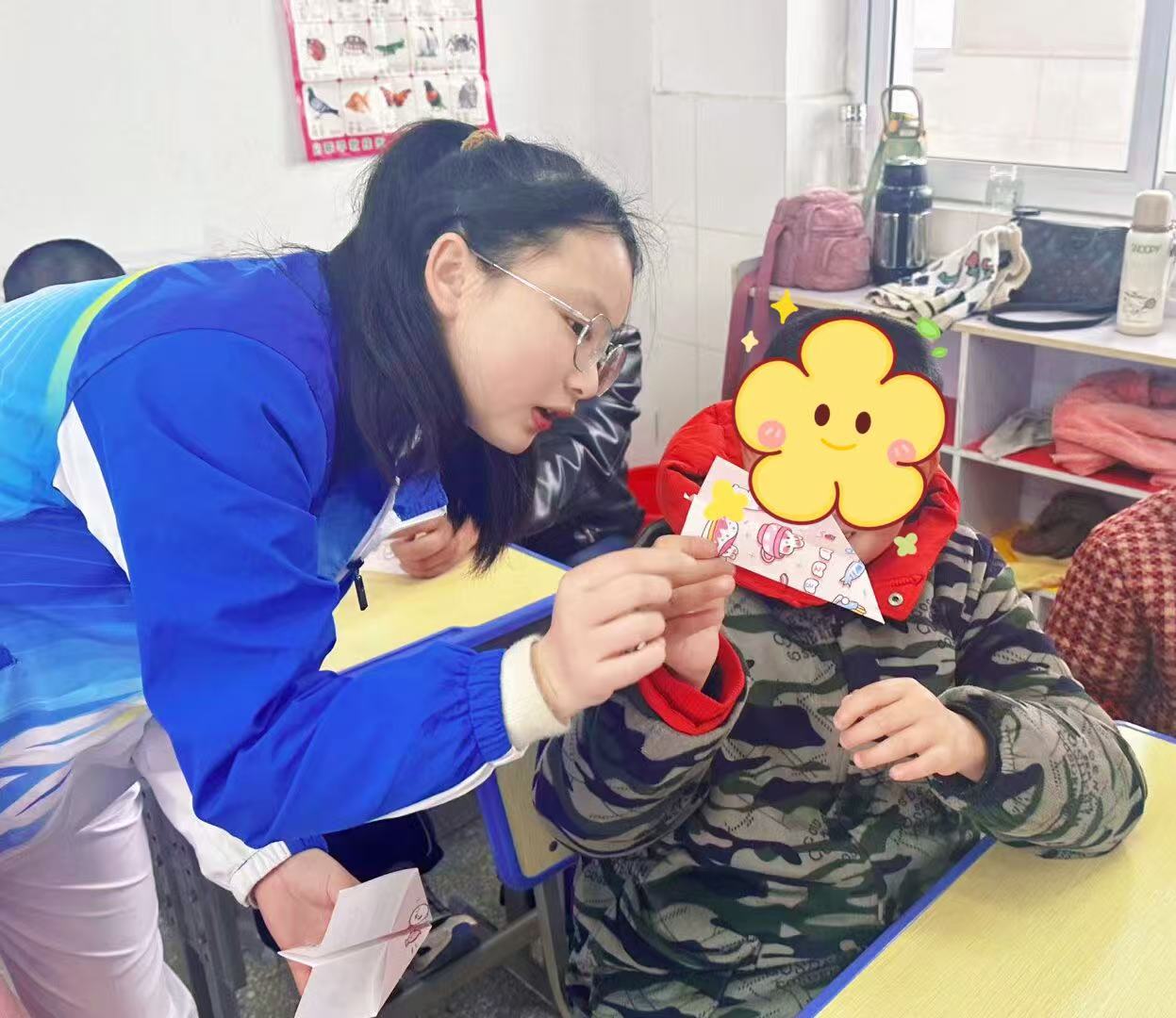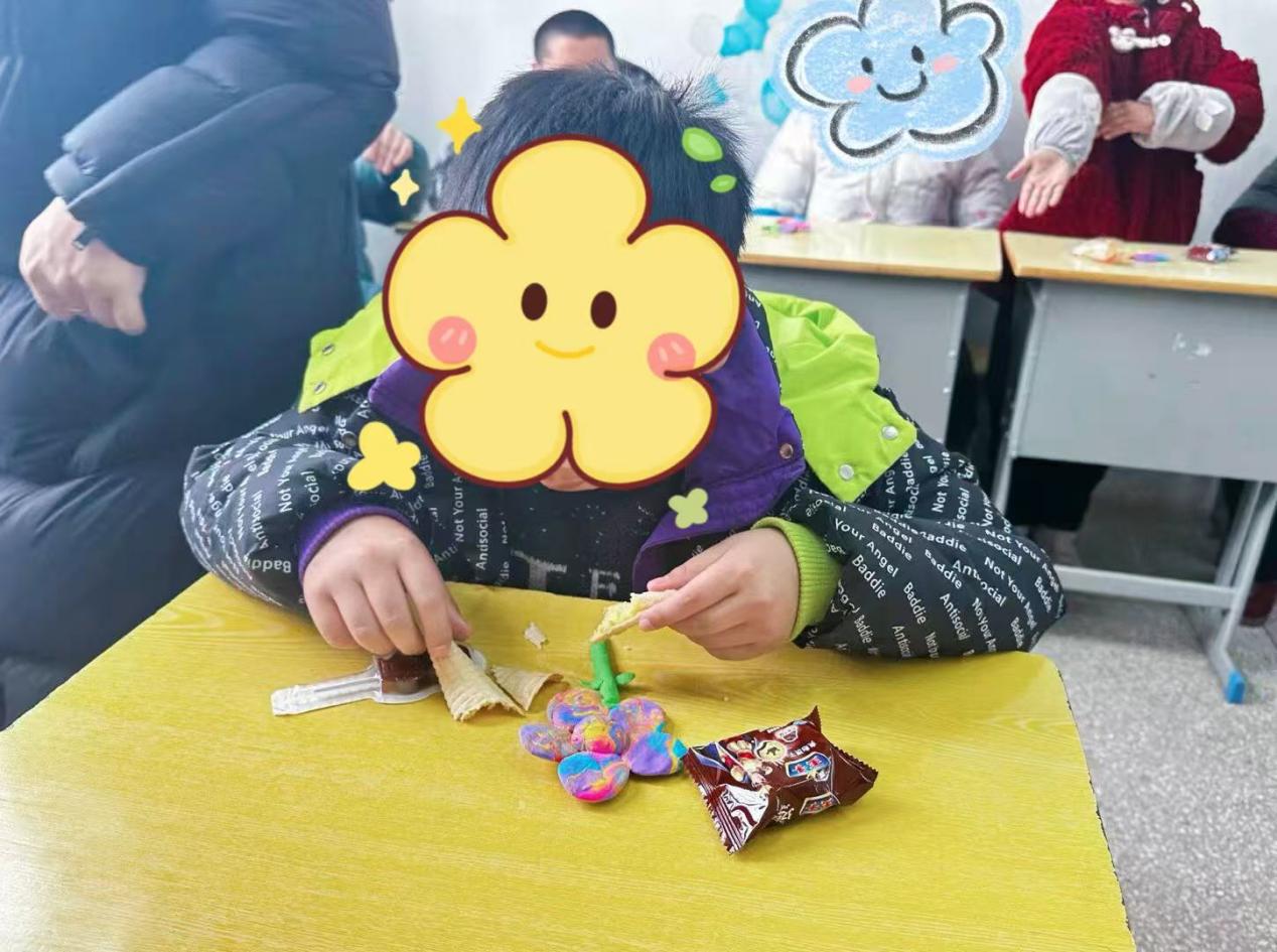 手工制作环节遇到困难,志愿者们贴心上前。面对使用剪刀不便的孩子,他们依着孩子们的喜好,精心剪出精美图案。不一会儿,五彩斑斓、造型各异的手工作品摆满桌面,如同希望之花绚丽绽放,承载着孩子们的梦想与志愿者的爱心。