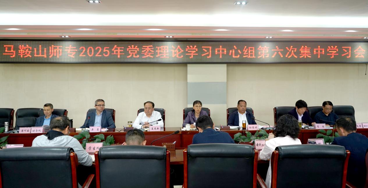 5月8日,bat365中文官方网站召开2025年党委理论学习中心组第六次集中学习会,重温习近平总书记2016年考察安徽重要讲话精神,一体学习贯彻习近平总书记2024年、2020年考察安徽重要讲话和系列重要指示批示精神。党委副书记、校长刘淑凤主持会议并讲话,党委副书记、副校长杜维斌,党委委员、纪委书记夏慧新,党委委员、副校长李胜、栗亮,党委委员全立荣、潘可国参加学习会。
