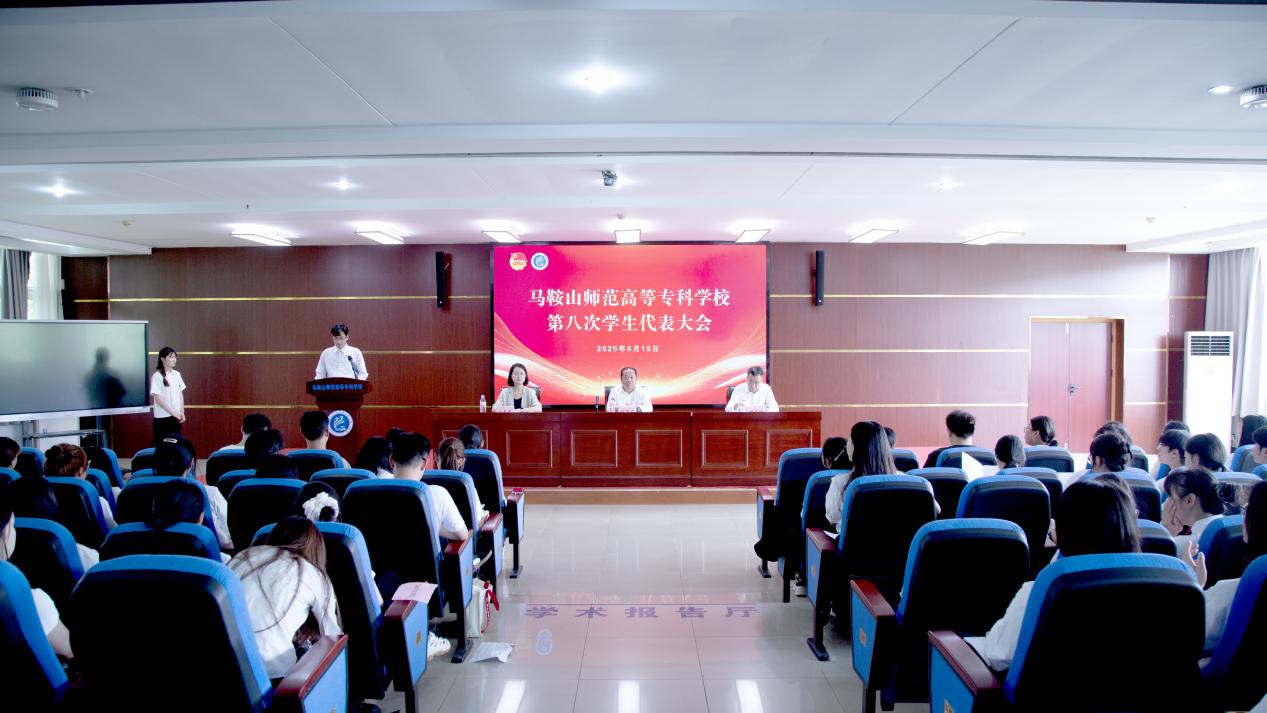 马鞍山学院学生会主席汪勋作为兄弟院校致贺词。学生代表张悦代表第七届学生委员会作工作报告。