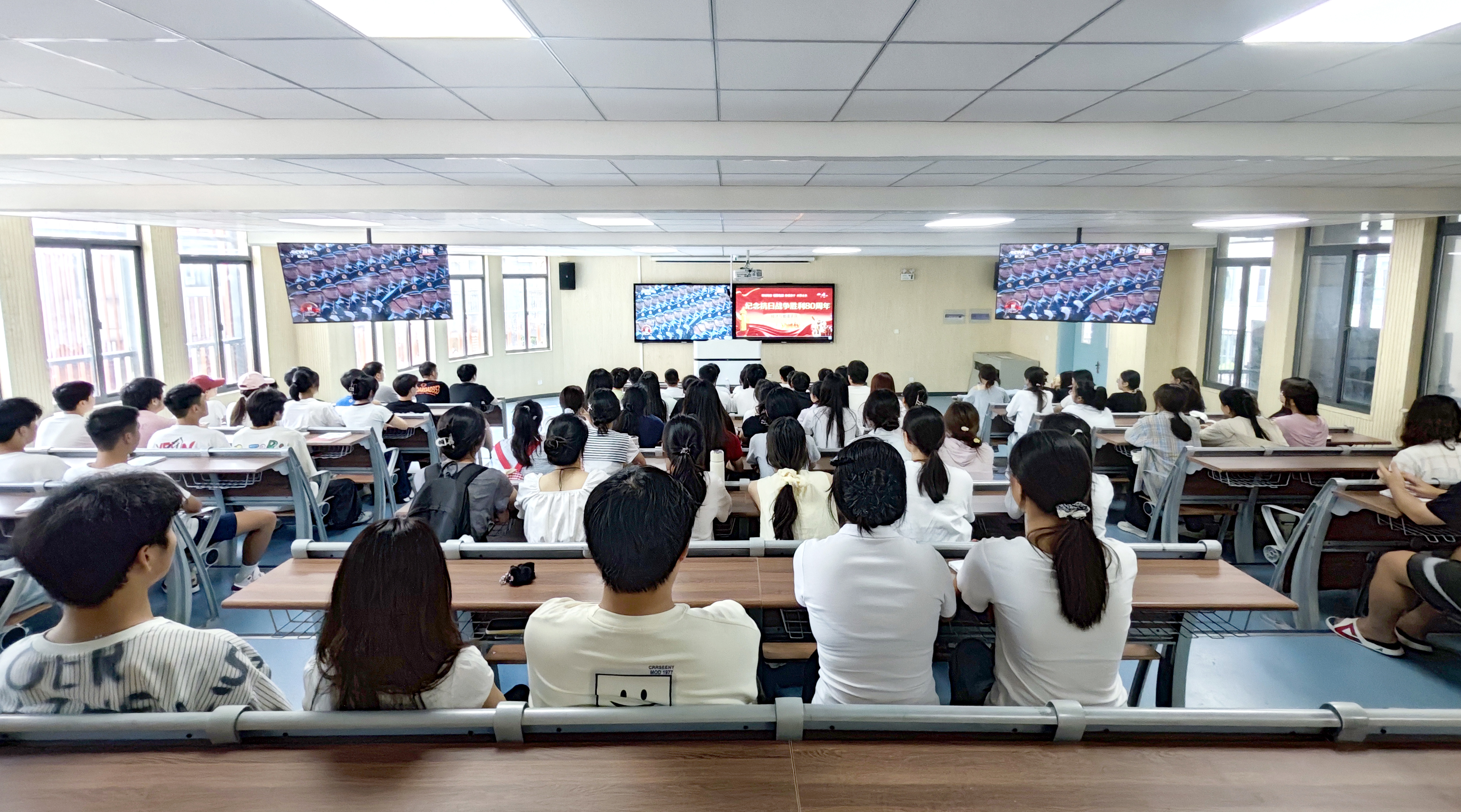 观看此次阅兵,师生们接受了一堂生动的爱国主义教育和国防教育课,是一次很有意义的沉浸式思想政治教育。通过观看阅兵,大家真切感受到国家新时代强军建设取得的伟大成绩,在维护国家主权、安全、发展利益上的坚定决心和强大能力。大家纷纷表示,将深入学习领会习近平总书记在纪念中国人民抗日战争暨世界反法西斯战争胜利80周年大会上的重要讲话精神,更加自觉主动投入到全面建设社会主义现代化国家的伟大实践中,为以中国式现代化全面推进强国建设、民族复兴伟业而奋勇前进。
