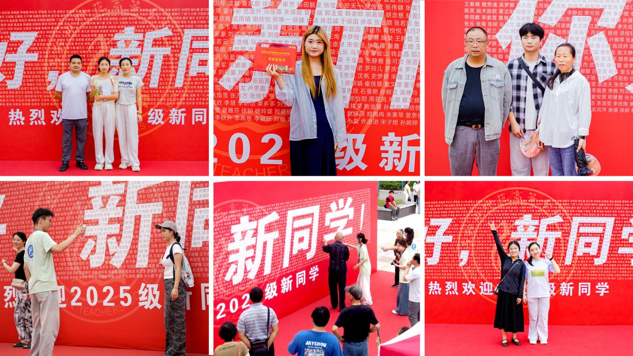 在两校区最醒目的位置,均设有“你好,新同学”迎新墙,巧妙地嵌入所有2025级新生的名字,吸引新生寻找自己的名字,打卡留念。校园内彩旗飘扬,标语醒目,到处洋溢着热烈而温馨的迎新氛围。