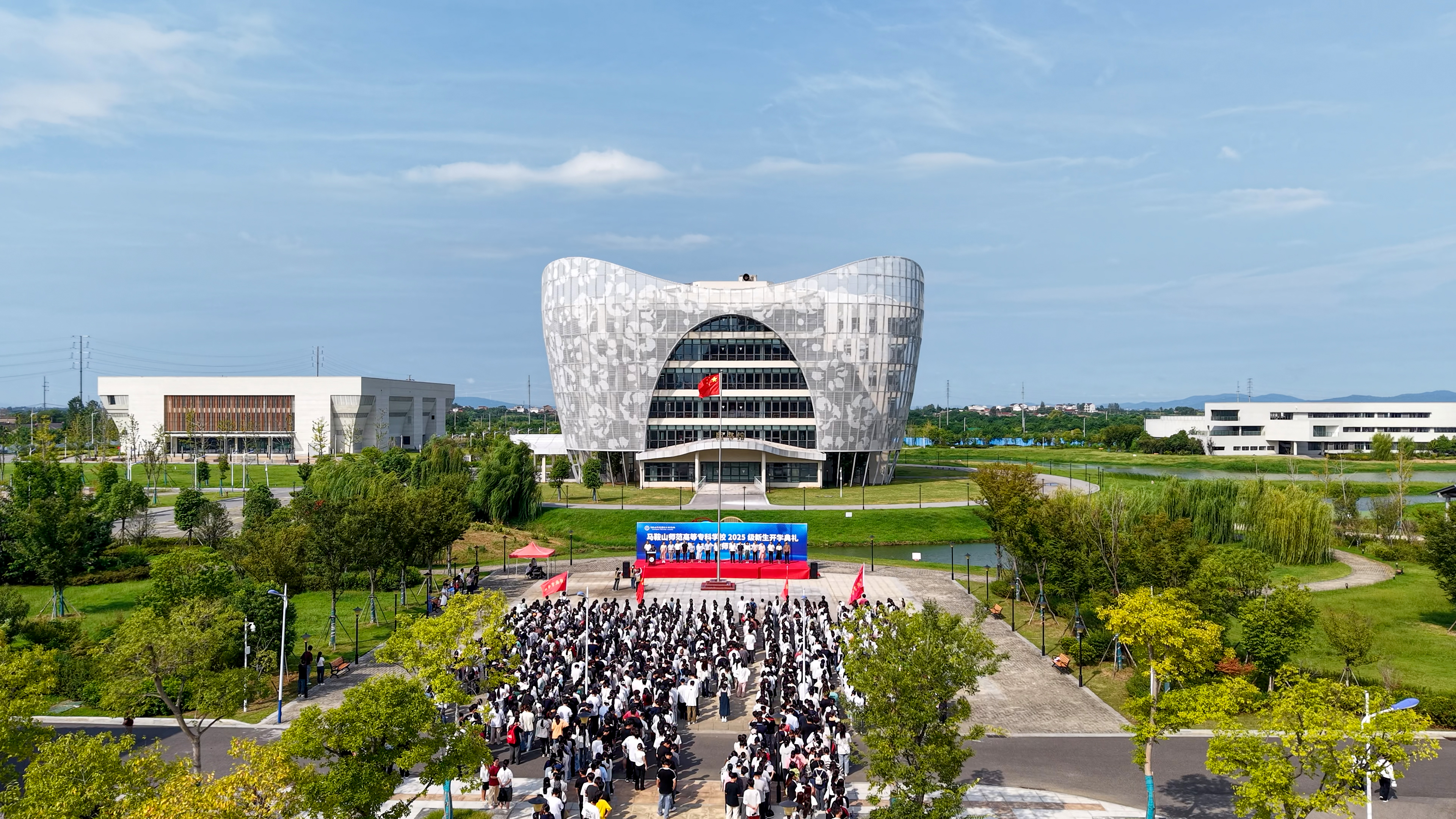 伴随着雄壮激昂的国歌,鲜艳的五星红旗冉冉升起,在两校区的上空迎风飘扬。全体师生肃立行注目礼。开学典礼及教师节庆祝大会正式拉开帷幕,与会人员共同见证了2025级新同学加入师专大家庭、开启人生新旅程;共同向躬耕教坛的全体教职工,致以崇高的敬意与节日的祝贺。