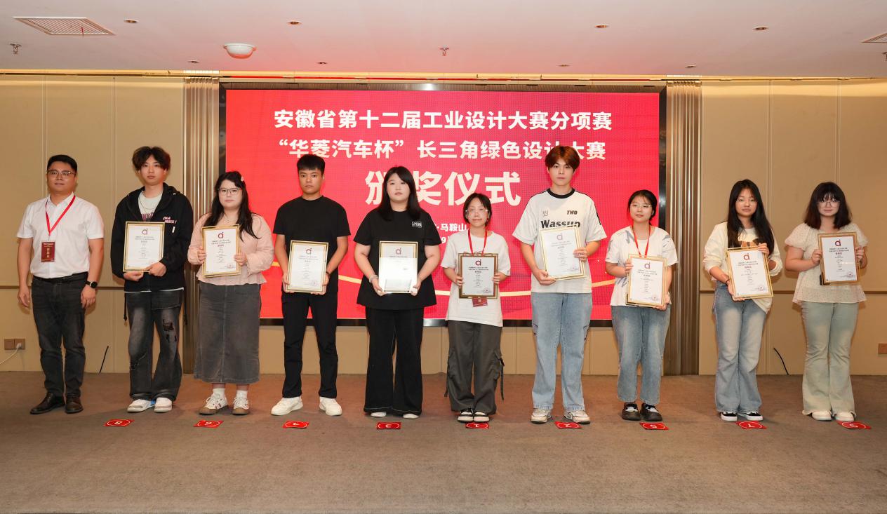 上午10时,安徽省第十二届工业设计大赛“华菱汽车杯”长三角绿色设计大赛颁奖典礼在雨山湖饭店隆重举行。 据悉,该赛事参赛选手是来自全国三十余所高校的本科生、专科生,教师及专业设计从业人员,bat36523级环境艺术设计和室内艺术设计班的学子凭借出色的专业设计能力,从近六百件作品中脱颖而出,揽括了一二三等奖!随后,马萍萍作为“优秀指导老师”上台领奖,马鞍山师专也获得了“优秀组织奖”。
