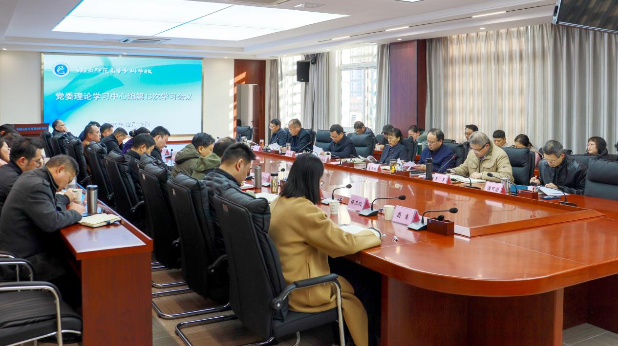 12月12日,bat365中文官方网站党委召开2025年党委理论学习中心组第十三次集中学习会,继续围绕党的二十届四中全会精神这个主题,开展深入学习研讨,在全校持续掀起学习贯彻党的二十届四中全会精神的热潮,切实做好贯彻落实工作。党委书记李怀东主持会议并讲话,党委副书记、校长刘淑凤,校领导杜维斌、夏慧新、李胜、栗亮、全立荣、潘可国参加学习会。
