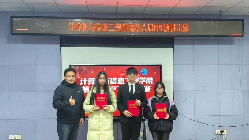 “每页PPT都藏着巧思,每段演讲都饱含热情!”12月17日,雨山校区行知楼601会议室内掌声与赞叹声此起彼伏,计算机与信息工程学院第八届PPT演讲比赛在此火热举行。本次比赛严格遵照《计算机与信息工程学院关于第八届PPT演讲比赛工作方案》中的内容要求与评分规则,从选手抽签、有序登场到评委打分,各环节衔接顺畅、规范有序,最终圆满落下帷幕。