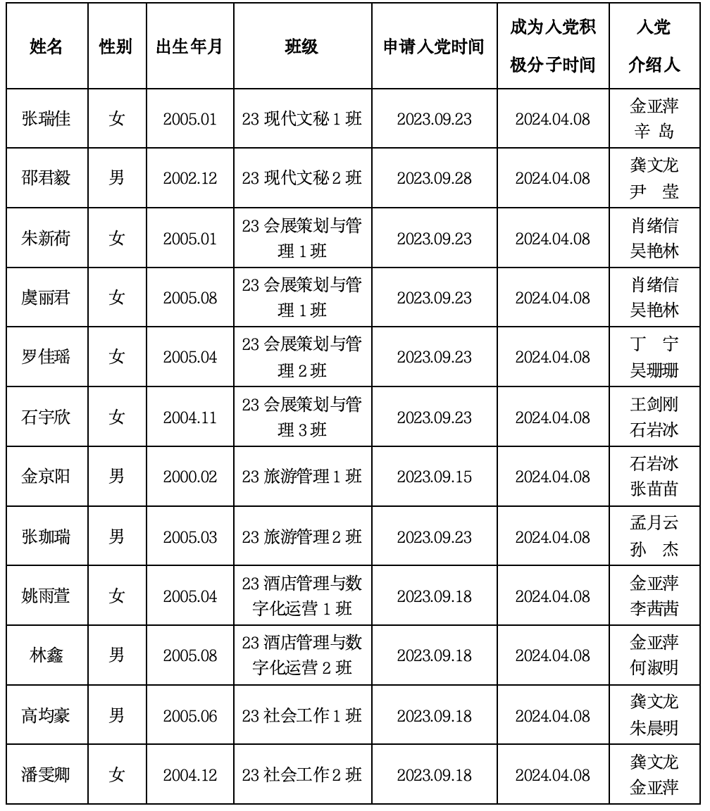经本人申请,组织审查,支委会讨论研究,拟接收张瑞佳等同志为党的发展对象。按照发展党员的程序与规定,现将以下同志有关情况予以公示,请监督。具体公示如下: