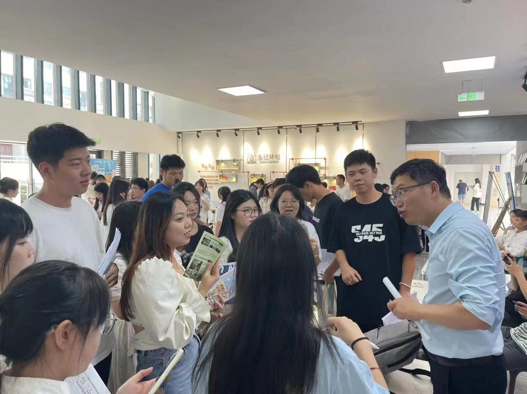 双选会正式开始之前,宁波雅戈尔旅游管理有限公司、华强方特宁波文化旅游发展有限公司、上海海昌海洋公园等企业进行了宣讲,让学生对实习企业有了全面细致的了解。双选会现场气氛热烈,企业展位前人头攒动,手持简历的同学们热情高涨,纷纷就工作内容、职业发展、薪资待遇等问题积极与意向企业进行交流与沟通。学院领导和教师通力配合,现场走访各用人单位,详细了解企业人才需求,同时也为实习生答疑解惑,给予学生实习规划指导。