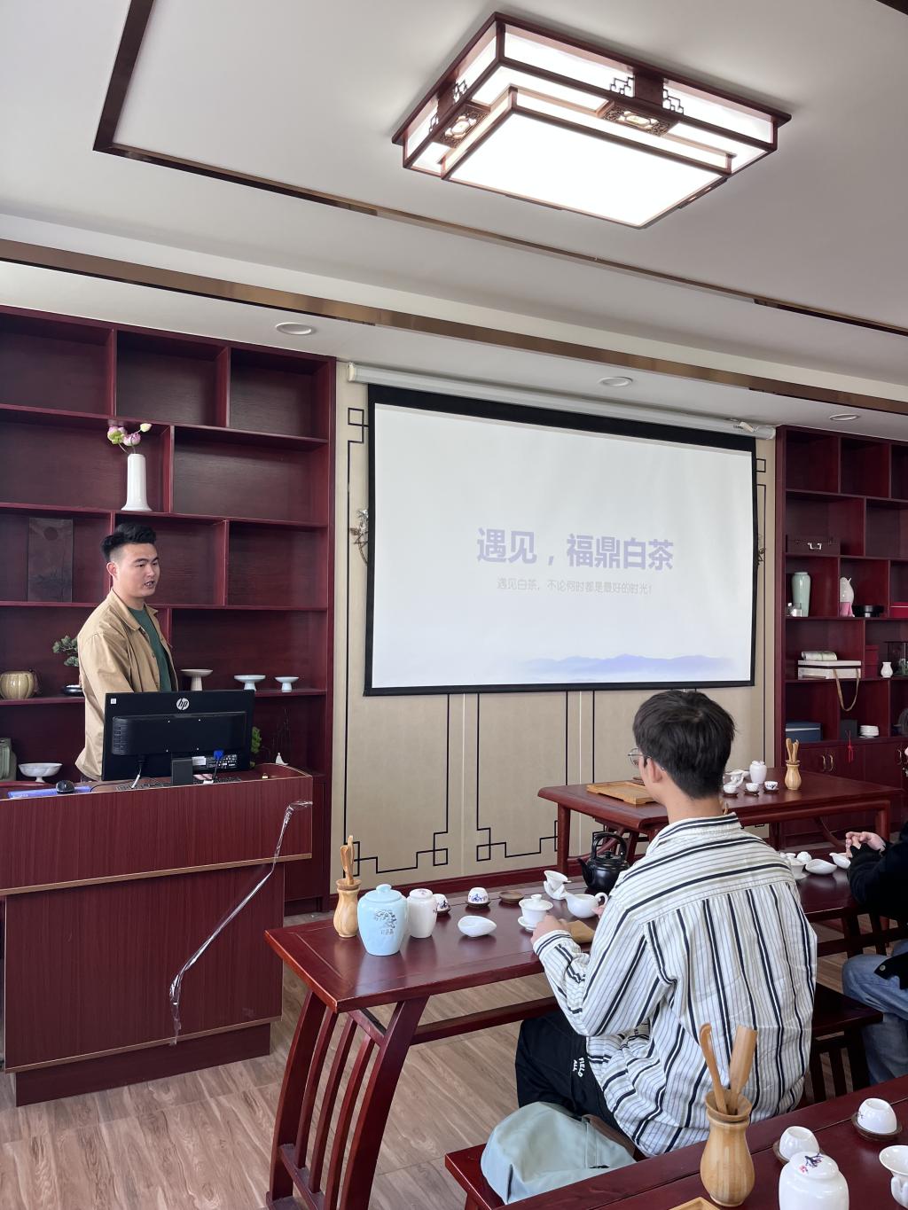 培训交流期间,工作室成员都早早的在教室等候,跟着校内商英老师练习茶艺,跟着校外汤缘缘技师认茶识茶,同周庆端师兄交流白茶特点等,因为大家同为茶艺爱好者,学习态度非常认真,交流过程也其乐融融。汤缘缘老师还带来了各等级茶叶给每个小组进行冲泡练习,经过实操训练,同学们都快速掌握了盖碗的正确使用方法和泡茶三要素的运用,与单纯的动作练习相比,进步非常明显。