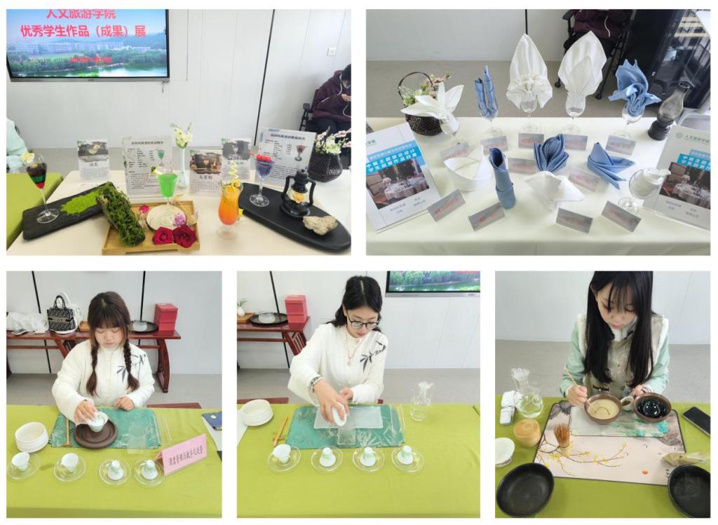 酒店管理与数字化运营专业的同学们则呈现了一场视觉与艺术的盛宴。他们带来了茶艺表演、鸡尾酒现场调制和主题宴会中心装饰物设计等多彩作品。茶艺表演“茶迎八方客”展示了同学们优雅的茶艺技巧和传统文化内涵;鸡尾酒现场调制“希望Hope”和“魔法Magic”则展现了他巧妙的调酒技艺和对酒文化的独特理解;主题宴会中心装饰物设计则通过精美的装饰元素为宴会增色添彩。