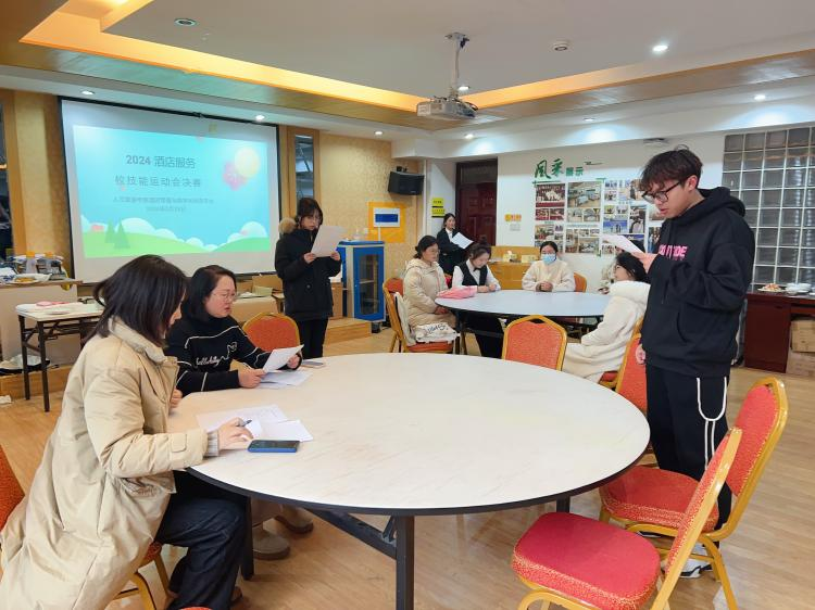 2月29日,澳门十大信誉网赌大全酒店管理与数字化运营专业在实训楼302顺利召开校技能运动会酒店服务赛项最终决赛。