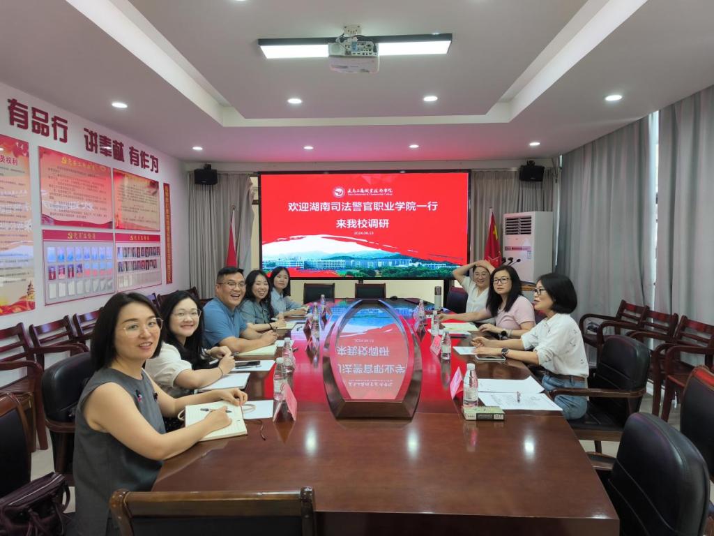 6月13日,湖南司法警官职业学院管理系副主任刘广富一行莅临我院,就公共管理类专业数字化转型升级、科研与社会服务的经验及实践进行深入调研学习。