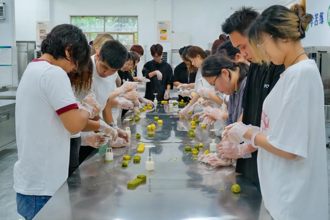 6月18日,省级技能大师楼洪亮为留学生和中国学生带来了一堂生动的中式面点制作课程,展示了传统绿豆糕的制作技艺。