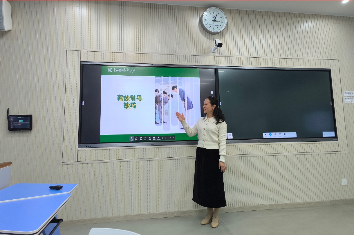 胡艳老师以她深厚的专业背景和丰富的教学经验,为大家呈现了一场高质量的教学示范。她从课程内容体系的安排出发,详细阐述了秘书职业形象设计与礼仪的重要性,并特别强调了接待礼仪在秘书工作中的关键作用。