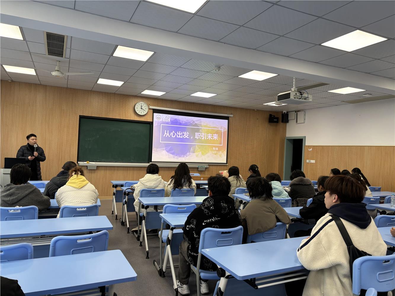 活动当天,学院还特邀浙江省社会工作领军人才、校友总会副秘书长、现任义乌市同悦社会服务中心总干事陈锋先生,为同学们带来了一场主题为“从心出发,职引未来”的专题讲座。讲座开始前,陈锋先生通过趣味小游戏活跃了现场氛围,使同学们在轻松愉快的氛围中进入讲座主题。讲座中,他通过一系列问题引导同学们思考自我认知,包括个人喜好、他人评价等,进而激发同学们对未来职业规划的无限遐想。随后,陈锋校友以其丰富的经验和独到的见解,为同学们提供了一场深刻而实用的职业规划指导。他提醒同学们要从自身兴趣、特长和市场需求出发,明确职业目标和发展方向。同时,他还分享了自己在职业生涯中的宝贵经验和成功案例,为学子们提供了宝贵的建议和启示。此次讲座不仅增强了同学们对未来职业发展的信心,也激发了他们积极规划职业生涯的热情。许多同学表示,听完讲座后受益匪浅,将在未来的学习和生活中更加注重技能储备和职业规划,努力为自己的未来铺就一条坚实的道路。