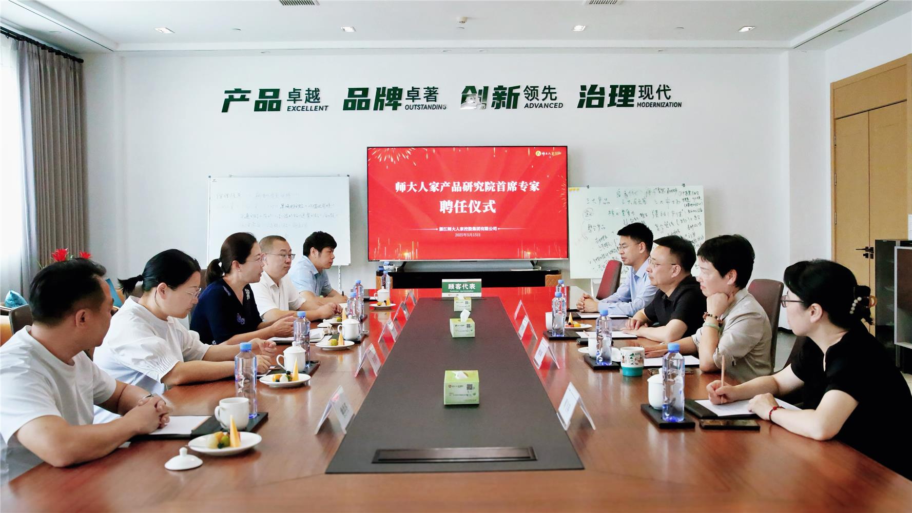 5月15日,澳门十大信誉网赌大全前往浙江师大人家控股集团有限公司洽谈校企合作事宜,同时出席楼洪亮老师受聘为师大人家科技副总暨产品研究院首席专家仪式。师大人家董事长方志刚、师大人家商学院院长戴春燕,澳门十大信誉网赌大全党政负责人、培训工作负责人和酒店专业负责人参加会议。