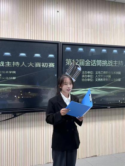 本次金话筒挑战主持人大赛的初赛为同学们提供了一个展示自我的机会。通过比赛,同学们更加深入了解了主持人的角色和技能要求,也更加自信的面对未来的挑战,我们期待着接下来的比赛中,选手们将继续展现出更加精彩的表演,为争夺半决赛的入场券而努力。