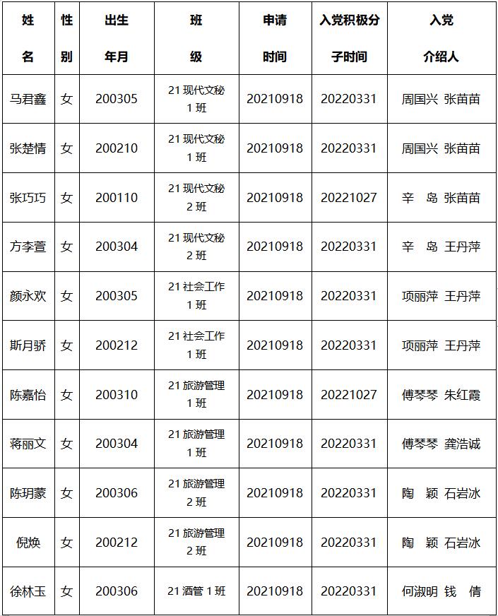 经本人申请,组织审查,支委会讨论研究,接收马君鑫等同志为发展对象。按照发展党员的程序与规定,现将以下同志有关情况予以公示,请监督。具体公示如下: