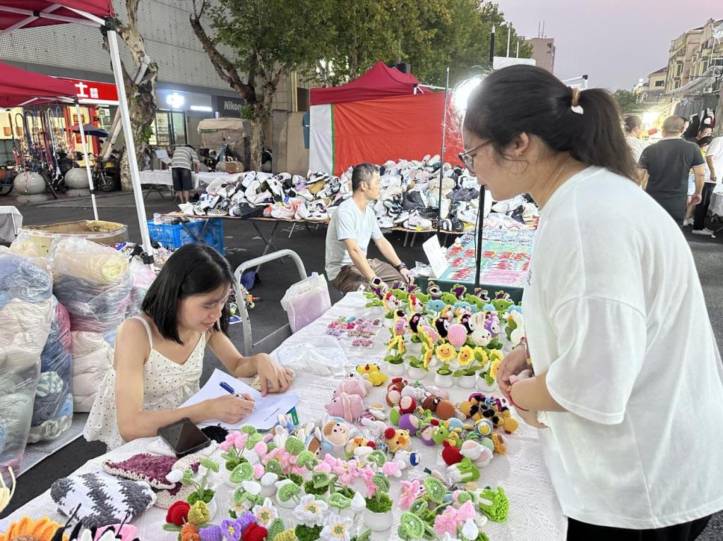 首站,实践团前往了三挺路夜市。三挺路夜市位于义乌市宾王商贸区,是义乌最早、最热闹、最大的夜市,集购物、餐饮、娱乐等多种功能于一体的综合性商业街区。三挺路夜市因其物美价廉、种类丰富的小商品和世界各地的美食小吃不仅吸引了大量的国内游客和居民,还吸引了来自全球的外国客商,成为他们的“打卡圣地”,为消费者提供了良好的购物体验。此外,三挺路夜市还注重文化氛围的营造,通过举办各种文化活动,吸引了大量游客前来参观和消费,展示了义乌夜市的繁荣景象。